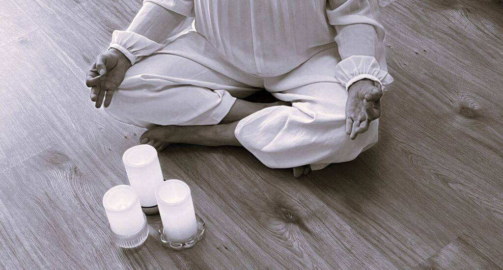 A szukhászanában végezzük az előkészítő gyakorlatokaz és akár a meditációt.